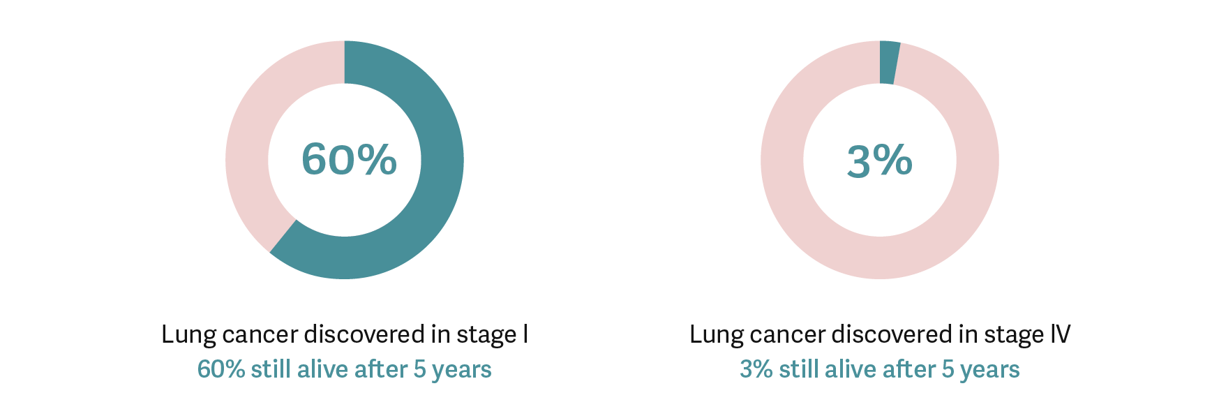People with lung cancer often have unnoticeable symptoms at the start of their illness, such as coughing and tiredness. Older people often think that these symptoms are age-related. This means patients often visit their GP too late and that the diagnosis of lung cancer also occurs (too) late.